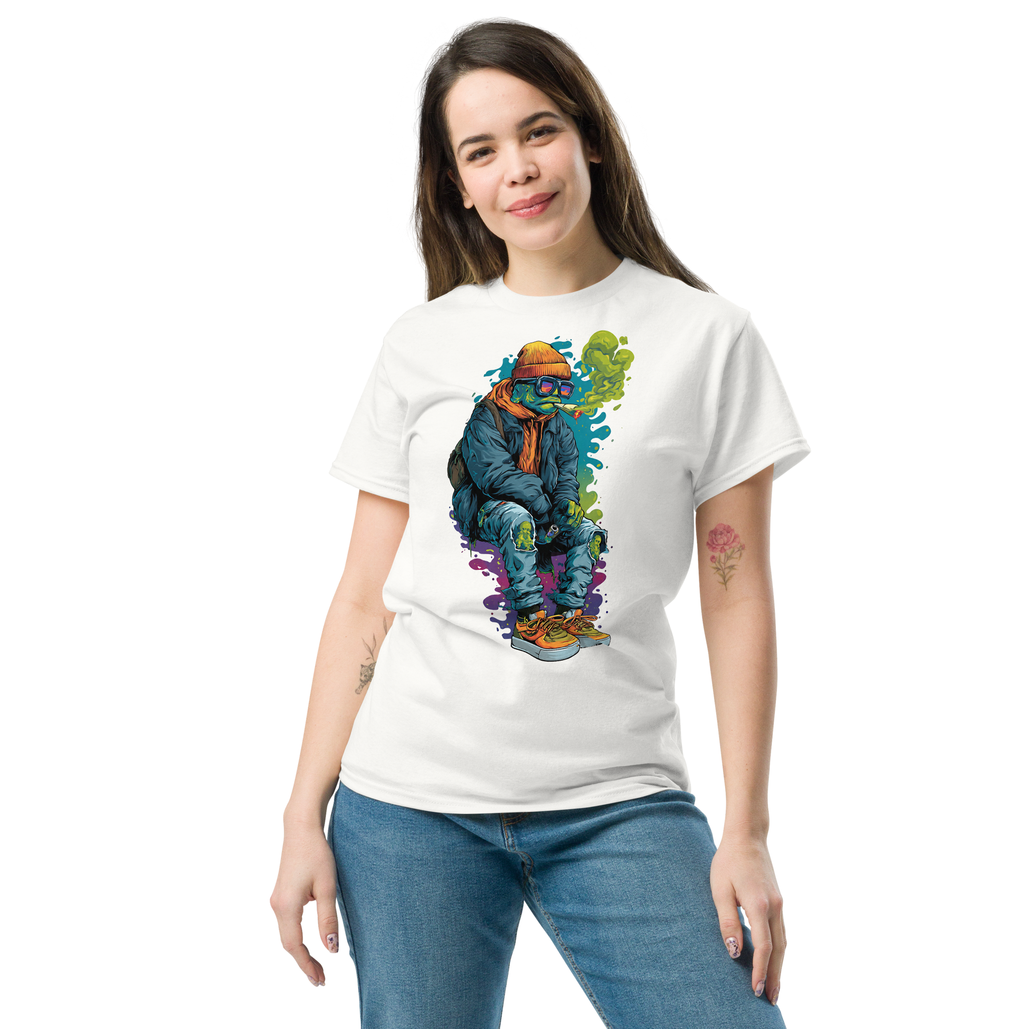 The 100% cotton unisex classic tee will help you land a more structured look. It sits nicely, maintains sharp lines around the edges, and goes perfectly with layered streetwear outfits. Plus, it's extra trendy now!